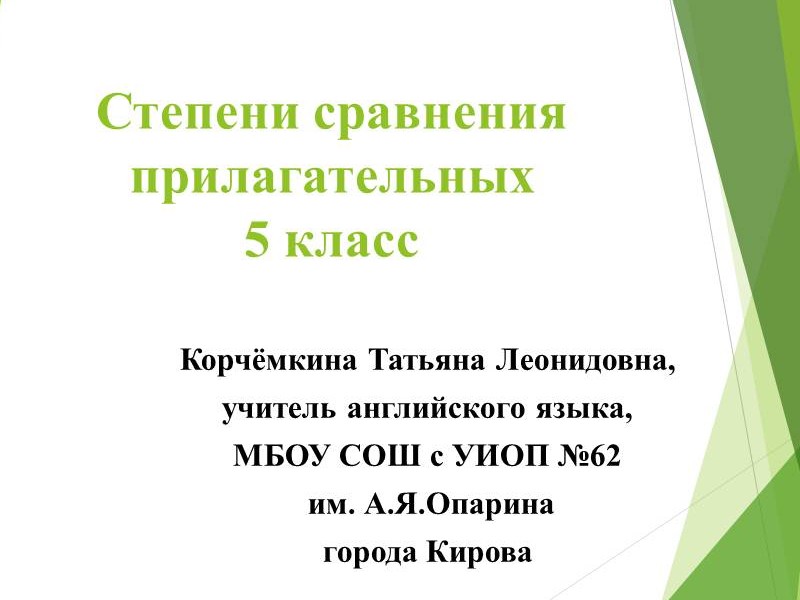 - Образовательная: познакомить учащихся с образованием и употреблением степеней сравнения прилагательных и обеспечить отработку данного материала в серии языковых и речевых упражнений.
