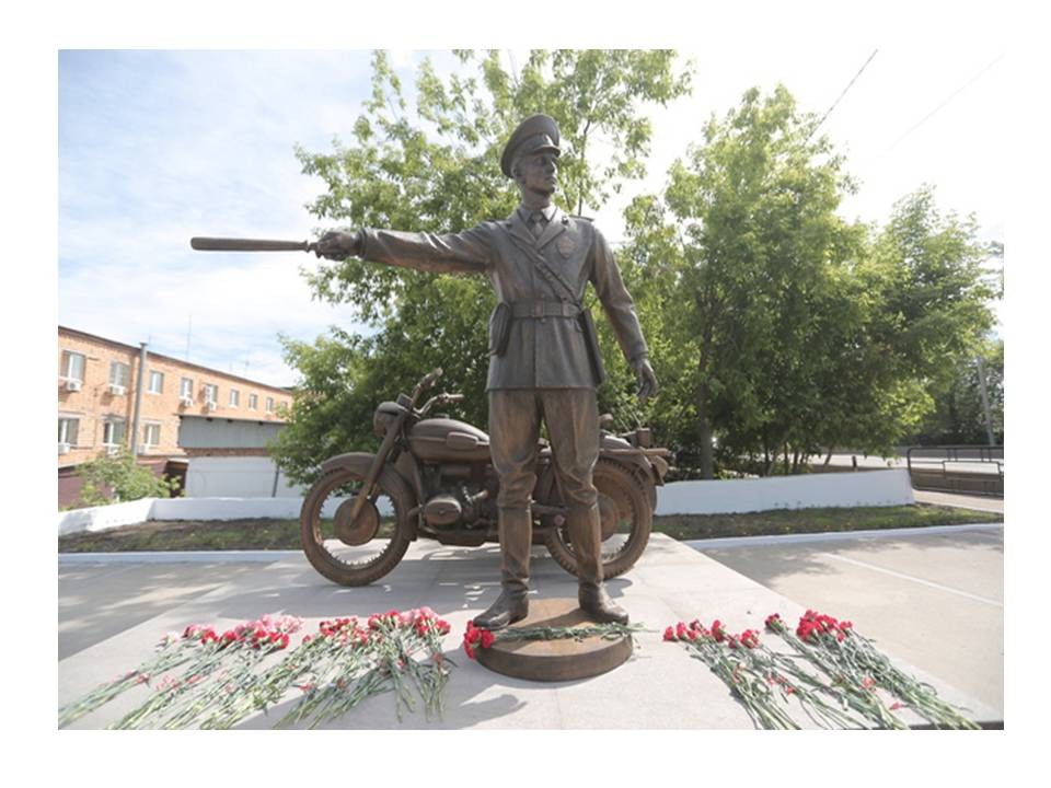 | Третьего июля бронзовую скульптурную композицию “Инспектор ГАИ” открыли на улице Брянская, 23, г.Красноярска, рядом с краевым управлением ГИБДД. Автор монумента – заслуженный скульптор России Константин Зинич. Памятник установлен за счет средств собранных сотрудниками и ветеранами Госавтоинспекции. Открытие памятника “Инспектор ГАИ” приурочили к 78-й годовщине образования службы ГАИ-ГИБДД России. | ||