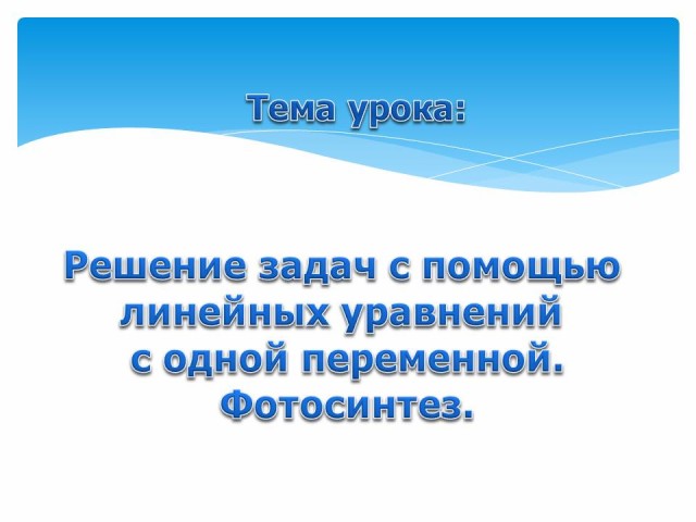 Цель: обобщить знания по теме “Линейное уравнение с одной переменной”. Дать общее представление о фотосинтезе.