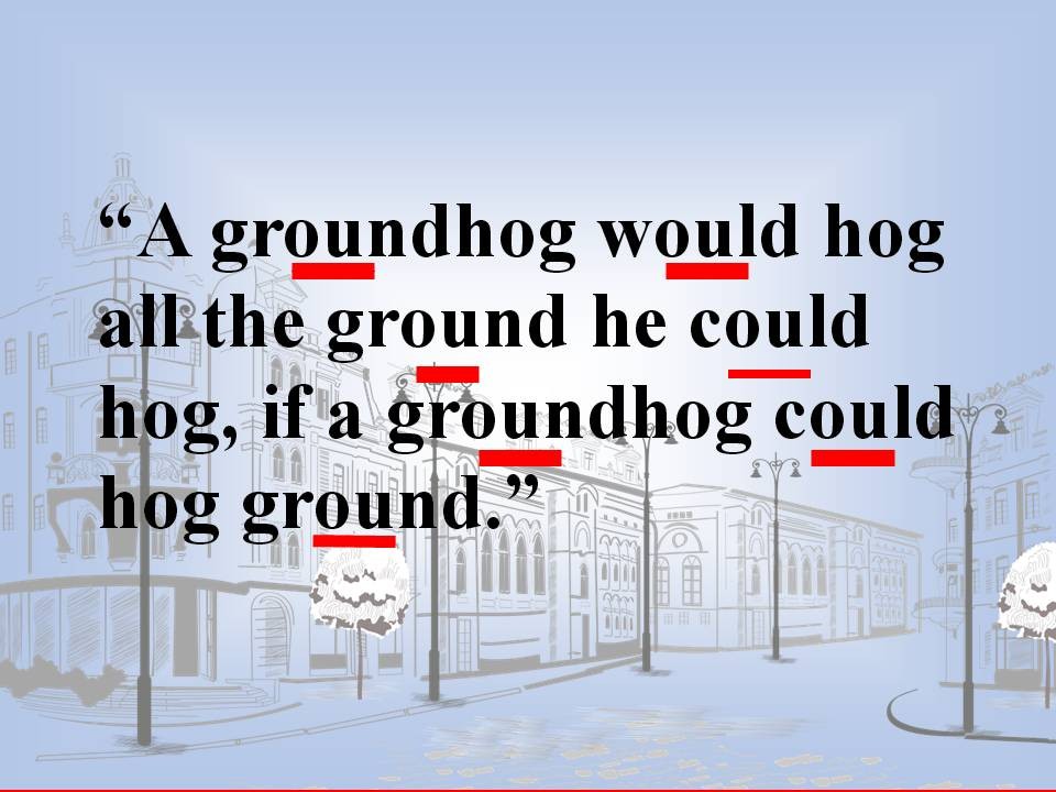 Our tongue – twister is “A groundhog would hog all the ground he could hog, if a groundhog could hog ground.”