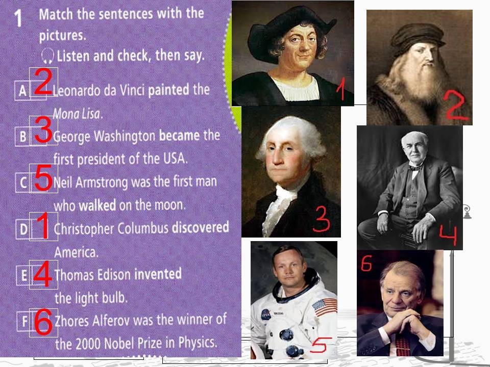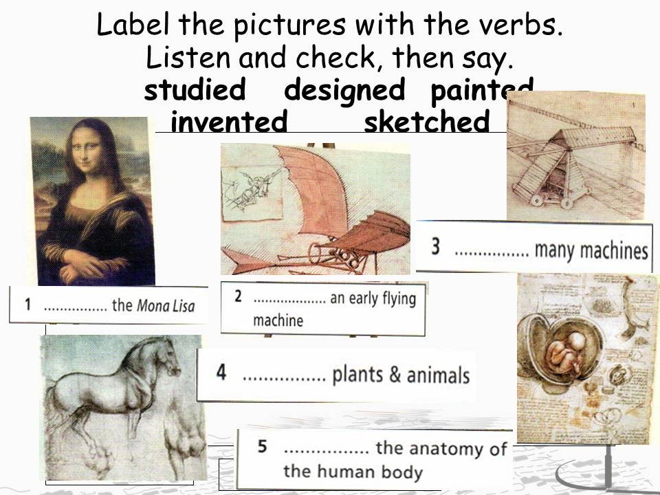 Ответ: painted, invented, designed, sketched, studied.