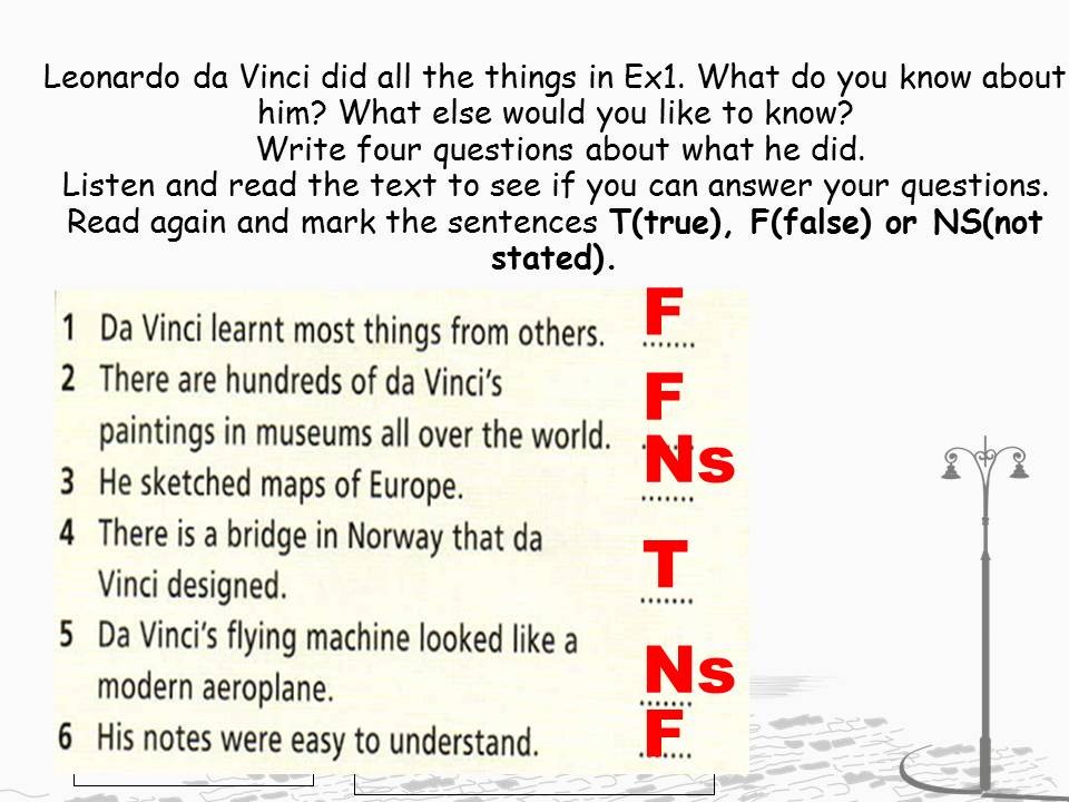 Read again and mark the sentences T(true), F(false) or NS(not stated).
