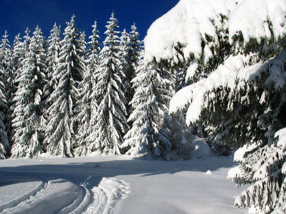 Воспитатель: А колобок прыг с окна и покатился. А попал колобок …. В сказочный зимний лес (слайд №2 с лесом и музыка метели).