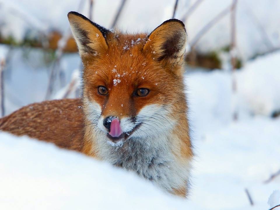 Колобок: Вы такие молодцы, так много интересного знаете. Мишка, пойдем дальше с нами гулять по зимнему лесу. Ой (появляются следы лисы слайд № 13), кто это к нам на встречу идет? (ответы детей) слайд с лисой №14.
