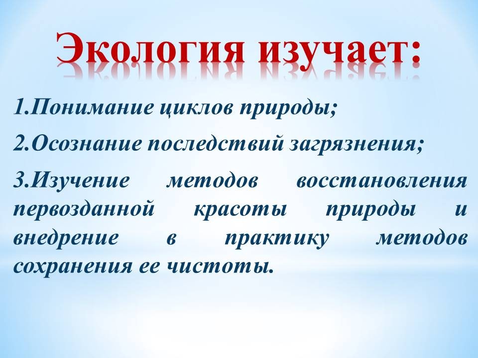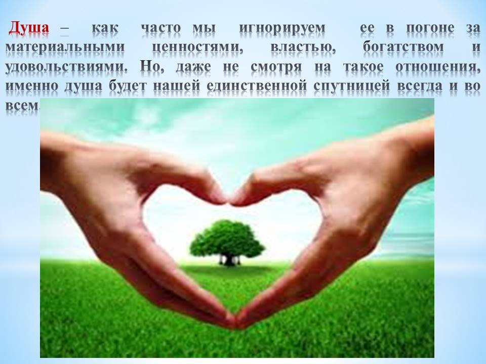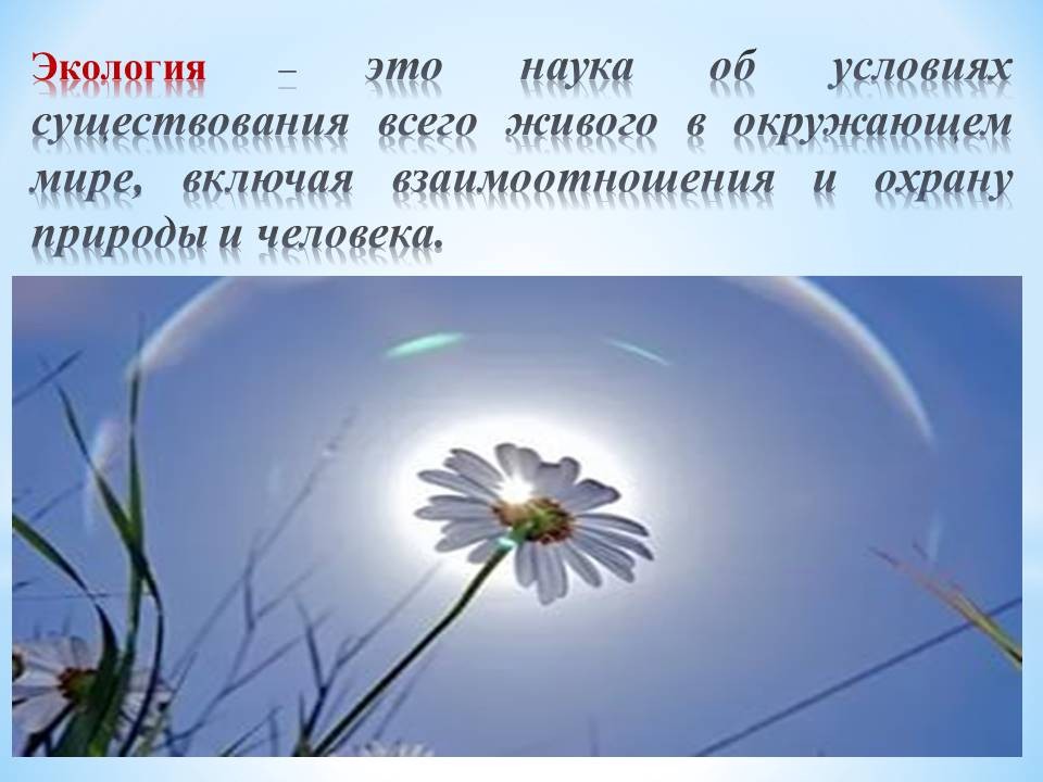 В нашей современной жизни появляются различные понятия, связанные с термином «экология» - социальная экология, инженерная экология, экология человека, глобальная экология, экология культуры, экология религии, экология сознания, экология души, экология духа. Это говорит о том, что интересы и внимание экологии вышли далеко за ее привычные биологические рамки. Таким образом, слово «экология» не является только биологическим термином, понятие экологии становится универсальной категорией и связано с безопасным существованием не только материального мира, но и мира духовного. Современная экология становится комплексной наукой, которая исследует не только связи живых организмов с окружающей средой, но и все виды взаимодействий в системе «человек - общество - природа». В последнее время становится значимой и актуальной проблема экологии души.