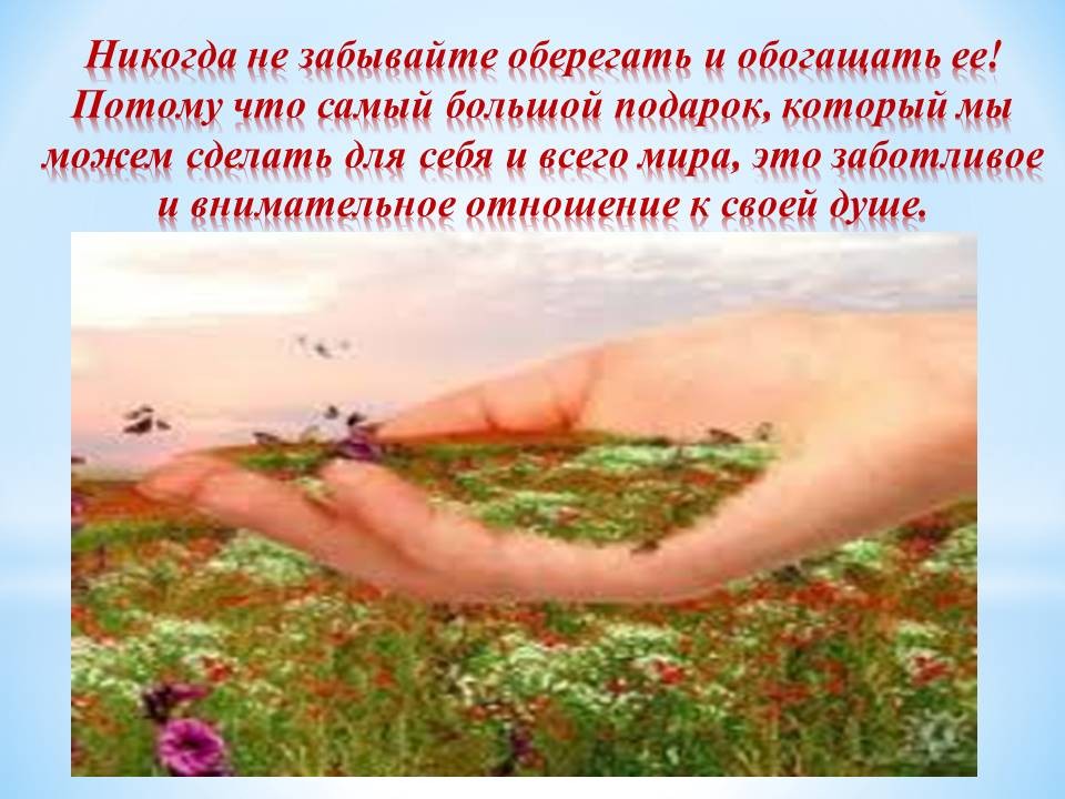 Как же сохранить, а не разрушить душу ребенка, сохранить ее чистой в нашем нестабильном, агрессивном, соблазнительном мире? Ответ на это вопрос заключается в том, чтобы задачи духовного воспитания приобрели первостепенную значимость, стали приоритетными в сфере образования. Воспитание должно строиться на основе духовно-нравственных ценностей, как в семье, так и в системе образования на всех его уровнях. Именно такое образование станет условием духовного процветания, как отдельной личности, так и общества в целом.