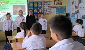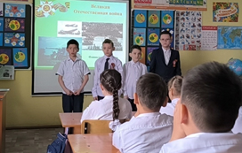 Учитель. Давайте послушаем о Великой Победе наших солдат, которой исполнилось уже 80 лет!