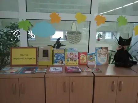 одного из жанров фольклора. Вам необходимо, вспомнить, что это за жанр, и, используя представленную литературу на книжной выставке, подобрать по два произведения.