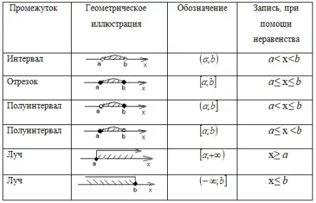 Перечислим типы промежутков, которые используются при подстановке задачи или выписывания ответа решенной задачи.