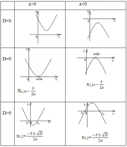 Доказать квадратное неравенство можно графическим методом (Таблица 3). Квадратичная функция обычно задается формулой у =ax2+bx+c, где a ≠ 0. Тогда решение квадратного неравенства сводится к отысканию нулей квадратичной функции и промежутков, на которых квадратичная функция принимает положительные или отрицательные значения.