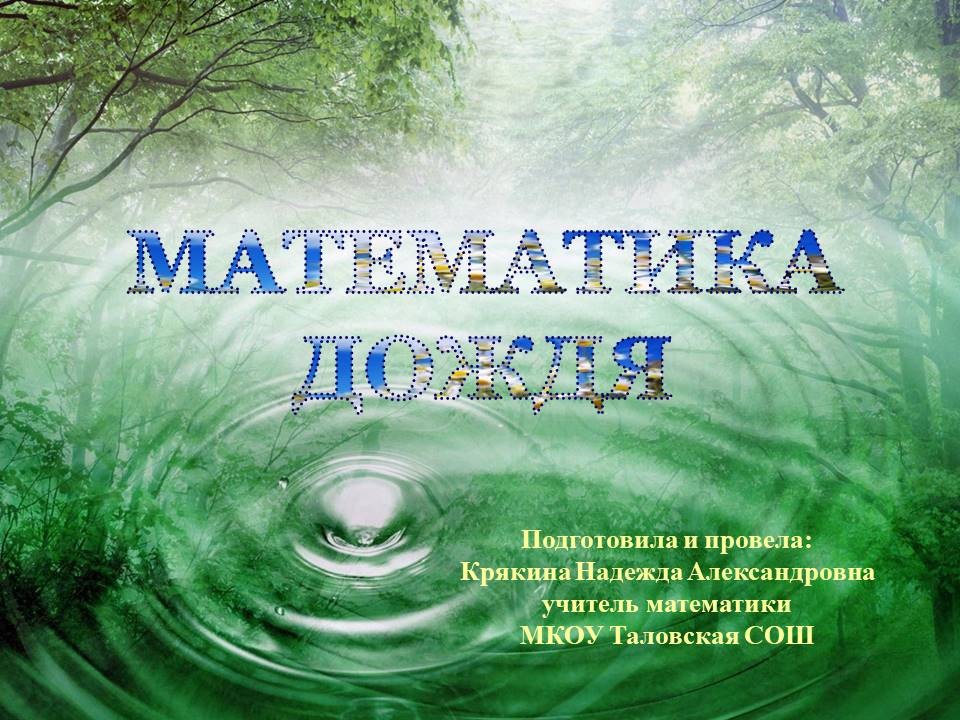 - Итак, значимость дождя очевидна. Давайте рассмотрим это природное явление с точки зрения географии, биологии, искусства, но подробнее остановимся на описании дождя методами математики и решим интересные задачи.