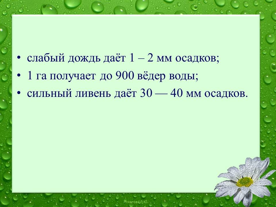 Но для полей это количество влаги имеет большое значение — при таком дожде 1 га получает до 900 вёдер воды. Во время сильного ливня выпадает 30–40 мм осадков. Представляете сколько это будет воды!