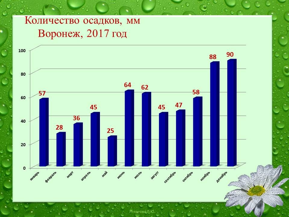 Перед вами диаграммма количества осадков по месяцам выпавших за 2017 год в Воронеже.