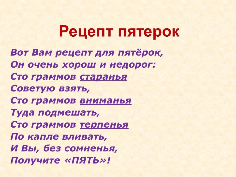 Дети читают рецепт «Пятерок» (Слайд 2)