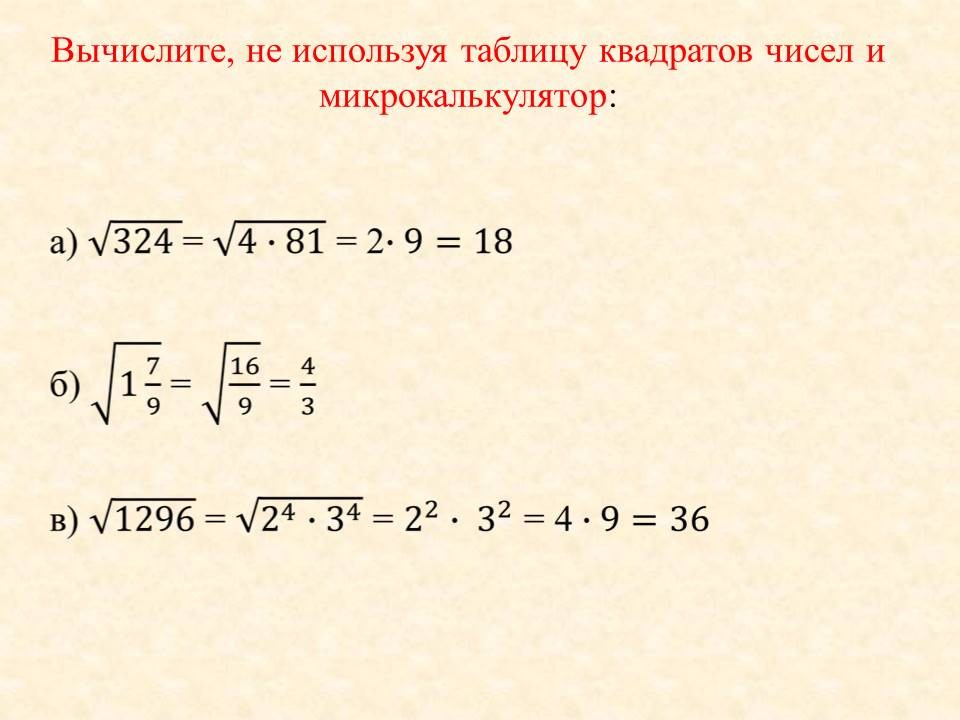 2) Вычислите, не используя таблицу квадратов чисел и микрокалькулятор: