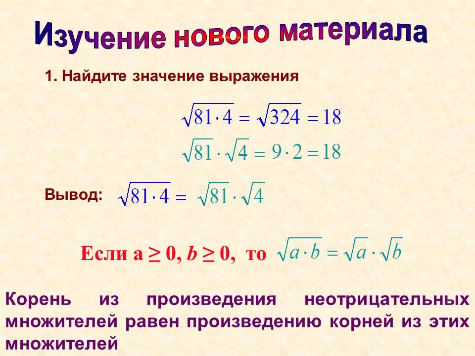 - Научить использовать свойства квадратного корня: корень из произведения, корень из дроби и корень из степени