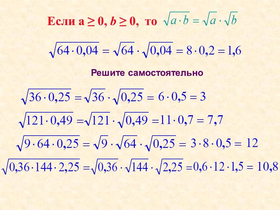 Корень из произведения неотрицательных множителей равен произведению корней из этих множителей.