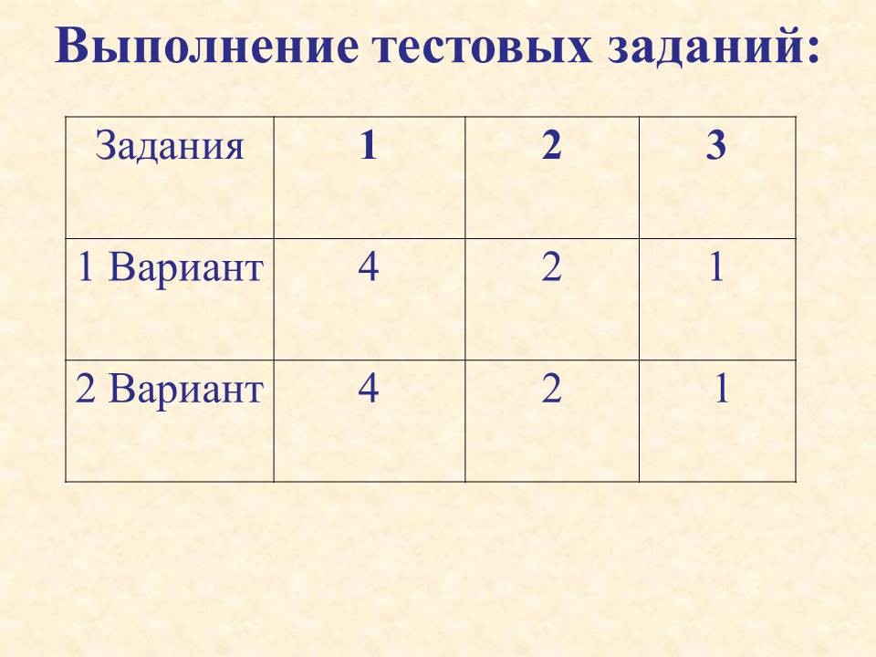 IV. Выполнение тестовых заданий: (7 мин) (раздать материал)