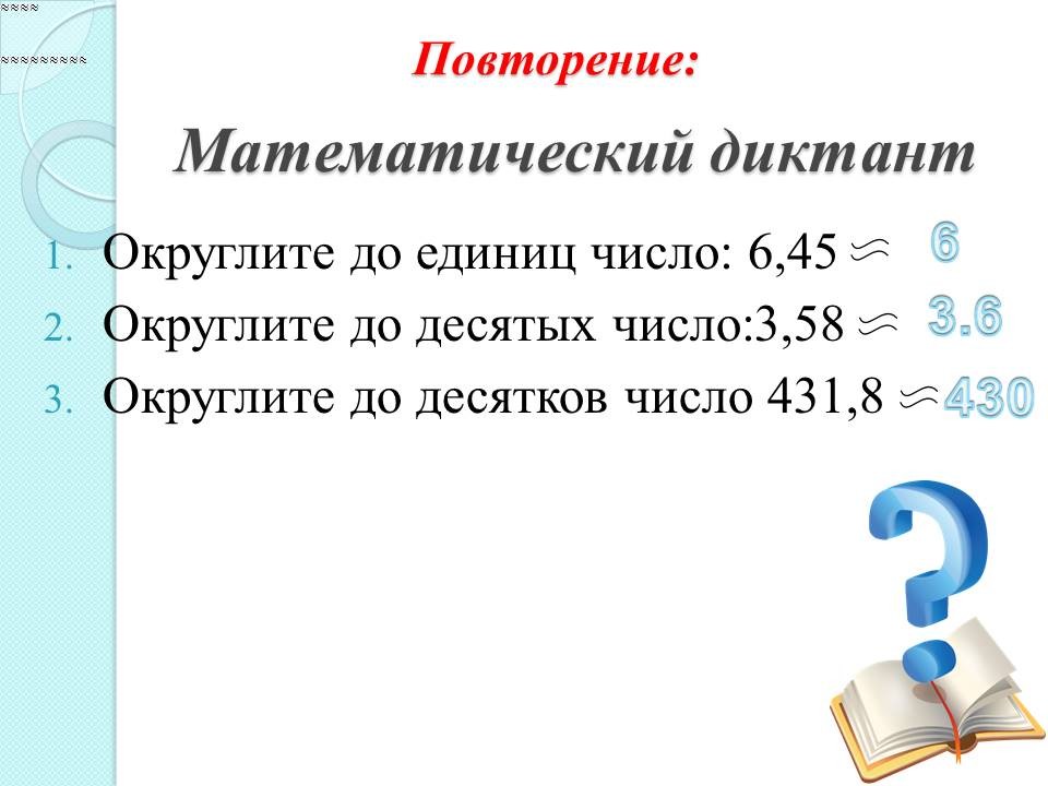 - Округлите до десятых число: 3,58