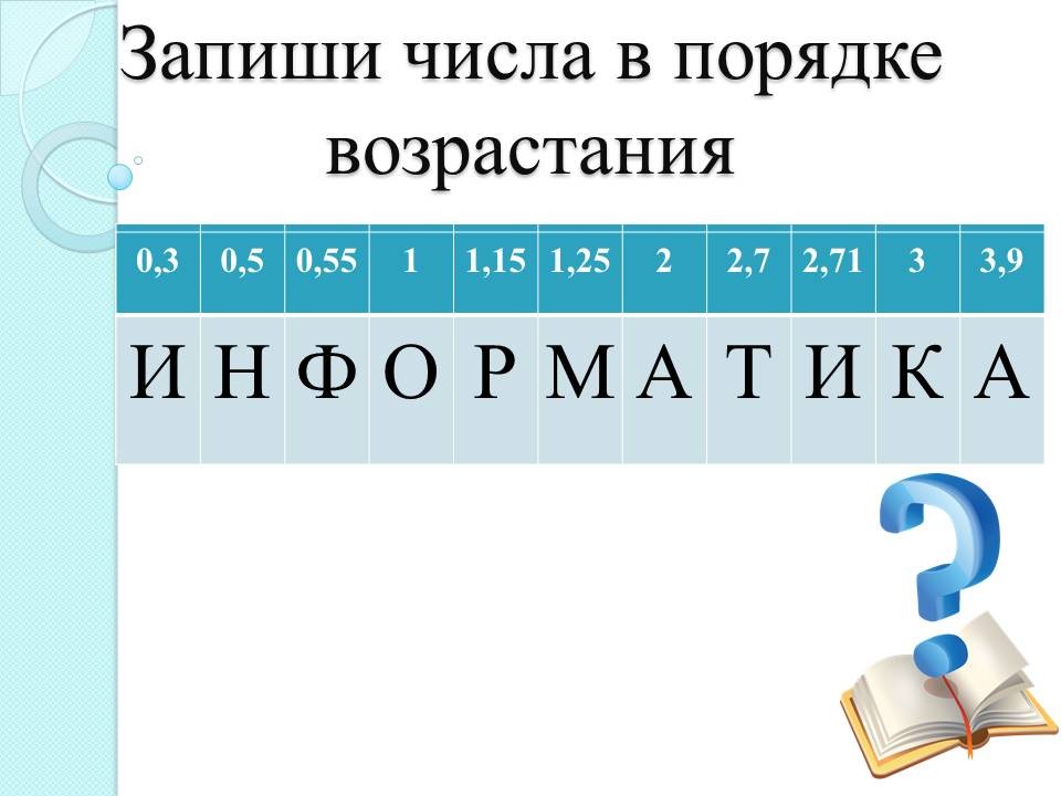 - Выполнение задания по информатике с электронной доски (расстановка букв в порядке возрастания присвоенных им десятичных чисел)
