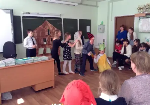 Следует отметить также, что драматизация помогает преодолеть пассивность тех детей, для которых изучение языка само по себе является трудной и непостижимой (по их мнению) задачей. Во время подготовки и проведения театрализованных постановок такие дети попадают в атмосферу непринужденного общения и дружеской обстановки, тем самым подсознательно стремясь внести свой вклад в общее дело, что , естественно, невозможно без применения знаний и умений, полученных во время занятии по иностранному языку.