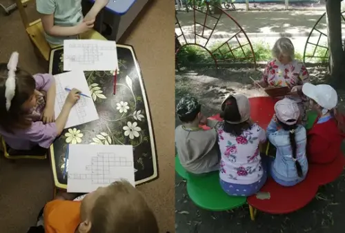 Деление на недели было условным. Наибольшее количество занятий было посвящено русским народным и авторским сказкам. Также прошли недели поэзии и рассказов. А последние дни были полностью посвящены работе с книгой.