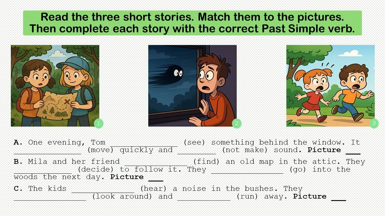 - Ученики раскрывают скобки, вспоминая Past Simple и неправильные глаголы.