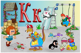 Кот, корзинка, киви, крот, колобок, кит ,кенгуру, кепка, конфета.