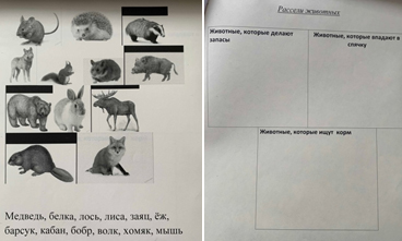 - «Звери, которые ищут корм»(кабан, волк, лиса, заяц)