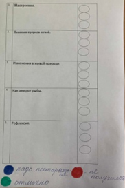 - Ребята, в маршрутном листе оцените себя, получилось, не получилось и еще надо изучать.
