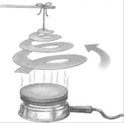 Ученики под руководством учителя вырезали из квадратного листа бумаги спираль и, подвесив ее над разогретой электроплиткой, наблюдали вращение спирали (см. рисунок). Какой способ теплопередачи объясняет вращение спирали? Объясните, как происходит процесс.