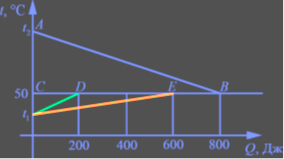 - Точка В на графике соответствует окончанию процесса нагревания калориметра.