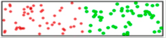 На рисунке изображена модель строения двух газов, разделенных перегородкой. Изобразите эту модель через некоторое время после того, как перегородку убрали.