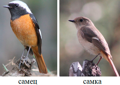Половую принадлежность птиц различают по окрасу. Внешний вид самца всегда ярче. К примеру, горихвостка обыкновенная серовато-коричневая, брюшко рыжеватого оттенка.