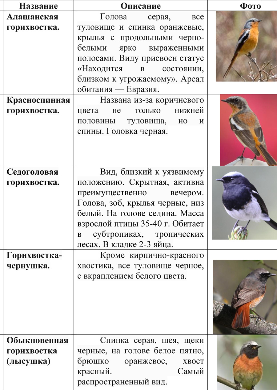 Проделав определенную работу, в итоге я собрала следующий материал о горихвостке.