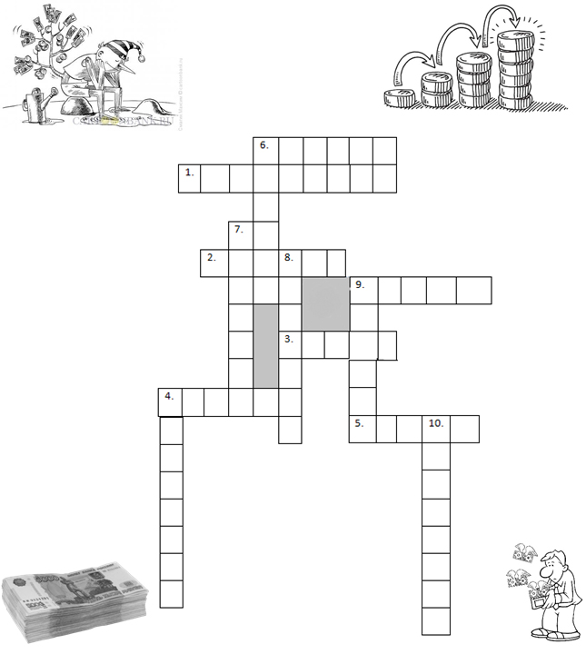 4. Доход, получаемый владельцем акции по результатам доходов акционерных обществ. 6. Система деловых отношений с целью получения прибыли. 7. Разница между суммой денег от дохода и расхода. 8. Вклад в банк. 9. Представлении имущества, за определенную плату на определенный срок. 10. Обесценивание денег, при котором цены на товары и услуги растут.