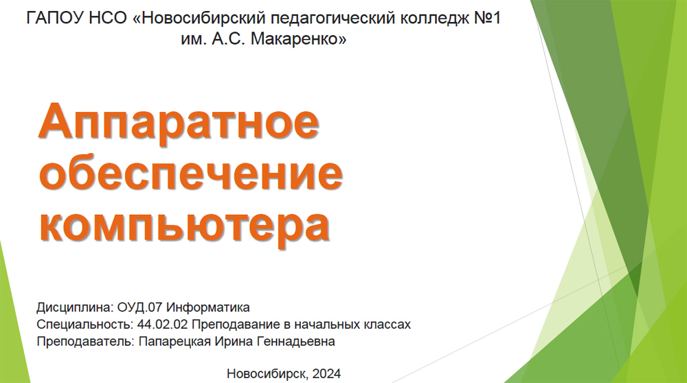 Презентация к уроку "Аппаратное обеспечение компьютера" Папарецкая Ирина Геннадьевна Разделы: Информатика Классы: 10, 11 Работа выполнена в форме презентации 27.01.2025