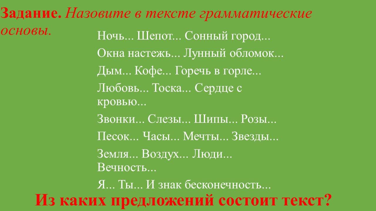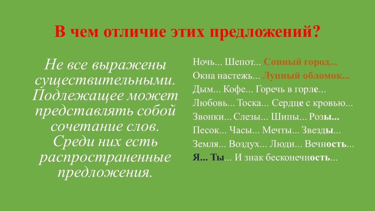 Ключевые слова: односоставные предложения, двусоставные и односоставные предложения
