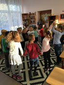 В: Ребята, сейчас у нас будет волшебное занятие. С помощью моей волшебной палочки, мы будем путешествовать во времени. Встаем все в круг и начинаем колдовать.