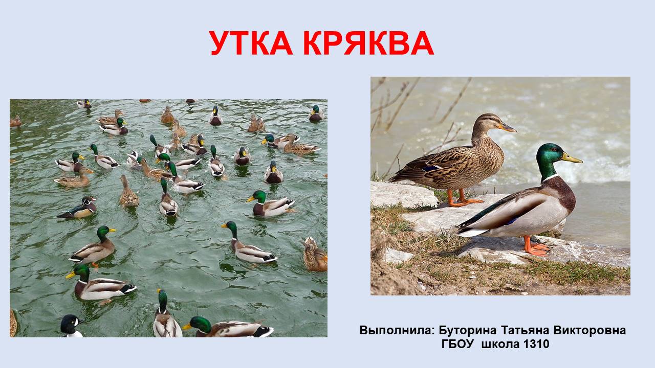 Утка кряква Буторина Татьяна Викторовна, воспитатель Разделы: Начальная школа, Внеклассная работа Работа выполнена в форме презентации 28.01.2025