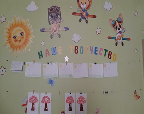- "Наша жизнь день за днем". Раздел представляет материалы о минувшем дне в виде рисунков, поделок, тем, целей занятий. Материал постоянно обновляется. Оборудованное место для организации выставки детских работ.