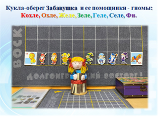 В каждой группе СЛШ «Полянка» есть игрушка-оберег, которая помогает педагогам в разных образовательных задачах. Когда мы думали, как организовать квест-игру, мы сделали нашу куклу-оберег Забавушку главным героем, у который были семь гномов-помощников: Кохле, Охле, Желе, Зеле, Геле, Селе, Фи, они подготовили интересные задания для детей. За каждое выполненное задание, гномики дают детям фишки. Забавушка наблюдает, как дети выполняют задания, и она вместе с детьми размещает фишки на карте прохождения заданий. Когда на карте будут собраны все семь фишек, Забавушка даст детям шкатулку, в которой будет загадка, отгадав ее, дети найдут волшебный ларчик.