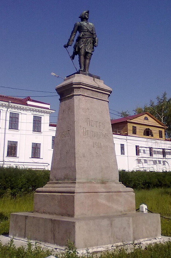 Памятник Петру I - последнему царю всея Руси из династии Романовых и первому Императору Всероссийскому, установлен в самом центре Архангельска, на набережной Северной Двины, возле Красной (Соборной) пристани, недалеко от Гостиных дворов.
