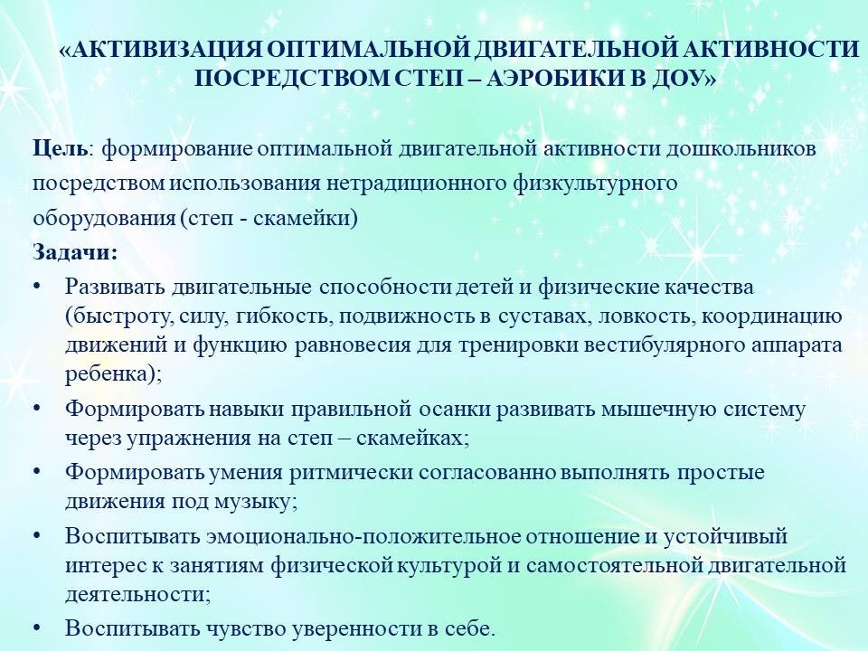 Активизация оптимальной двигательной активности посредством степ-аэробики в ДОУ