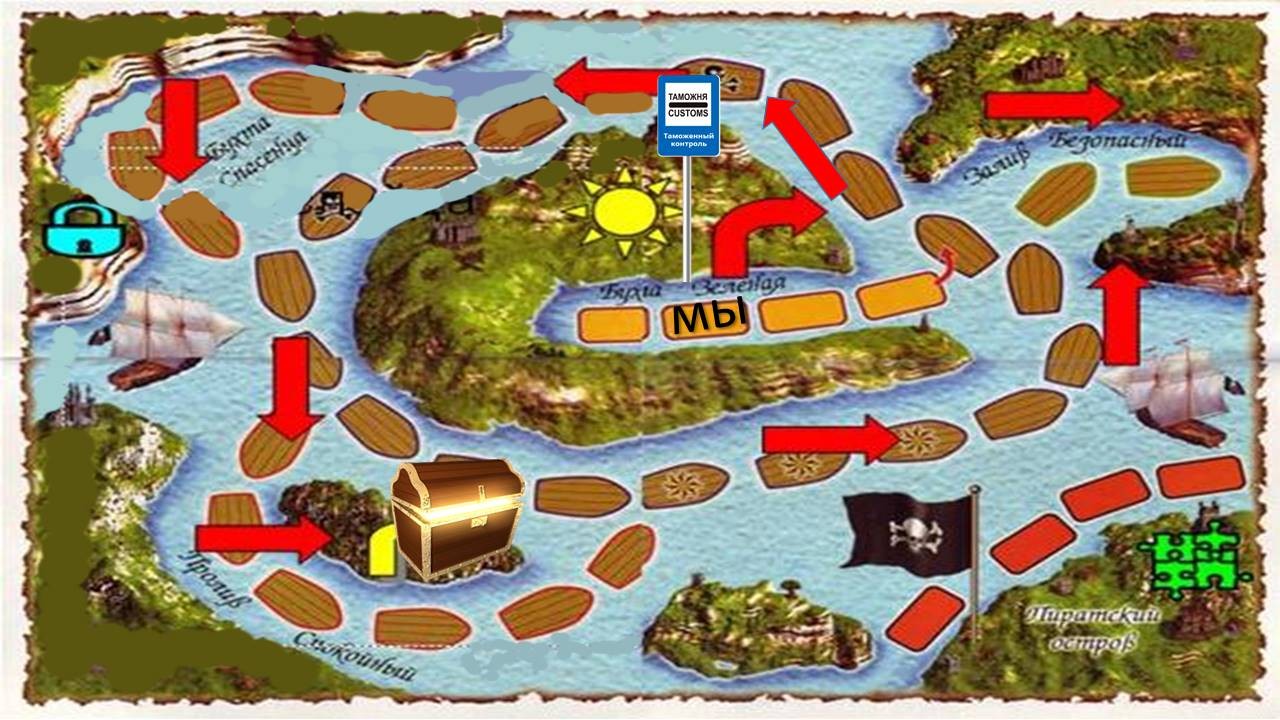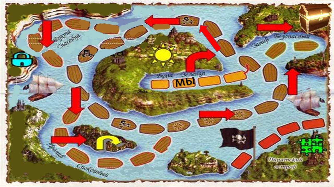 Учитель: Да. Нас встретил пират. Он оставлен на этом острове, следить за тем, чтобы клад получили самые достойные. А чтобы проверить, достойны вы клада или нет, вам необходимо выполнить все задания, придуманные пиратом.