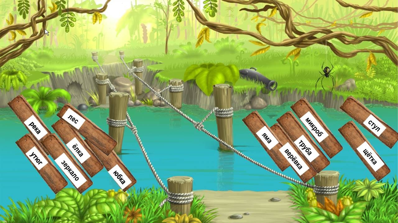 Учитель: Мост построен, продолжаем путь по джунглям.