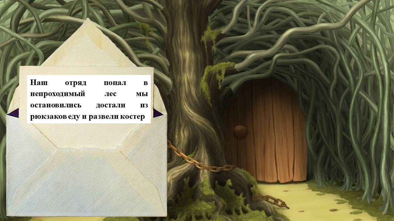 Наш отряд попал в непроходимый лес мы остановились достали из рюкзаков еду и развели костер