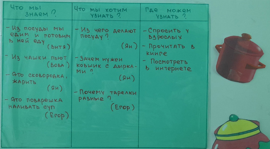 На предварительном этапе подготовки к проекту воспитатели провели опрос среди детей по «Модели трёх вопросов».