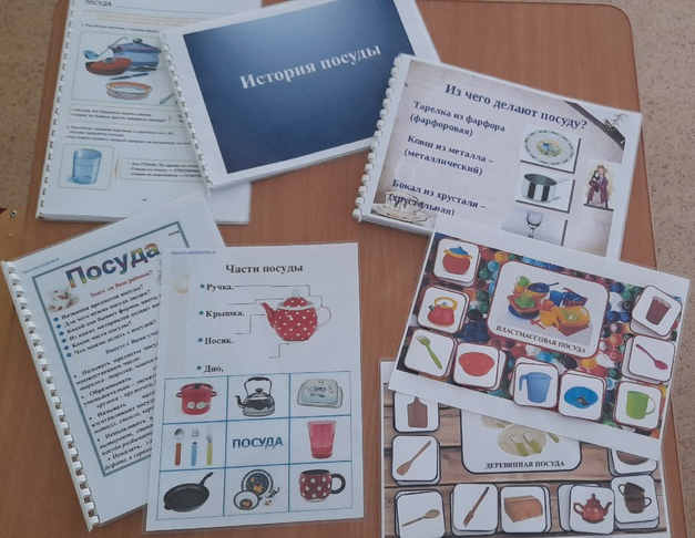 Исходя из психофизических особенностей детей с задержкой психического развития, на занятиях использовались приемы визуальной поддержки в виде презентаций, картинок, альбомов, непосредственно предметов самой посуды.