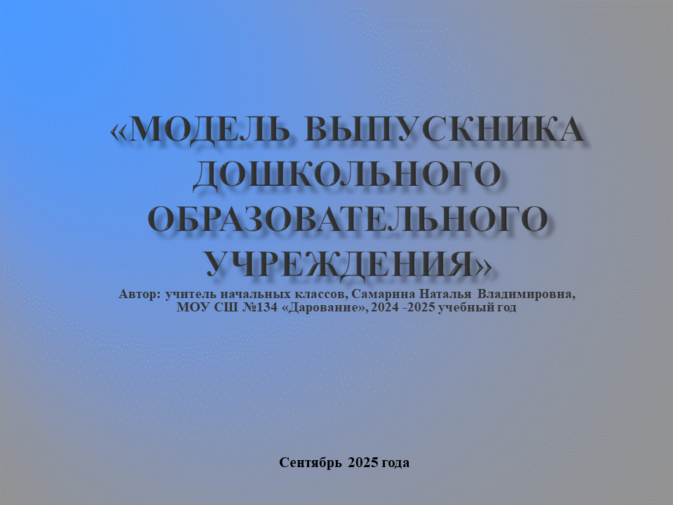 Модель выпускника дошкольного образовательного учреждения Самарина Наталья Владимировна, учитель начальных классов Разделы: Работа с родителями Класс: д/с Работа выполнена в форме презентации 13.02.2025